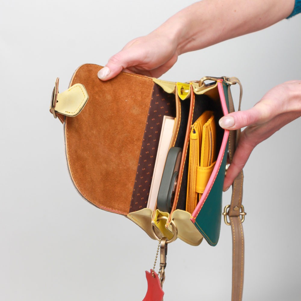 Chaque sac étant confectionné à partir de chutes de cuir recyclées, des variations de couleur et de texture peuvent apparaître, rendant chaque pièce absolument unique.