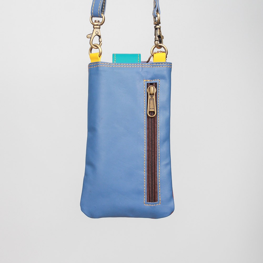 La pochette téléphone Janis est un accessoire unique et écologique, fabriqué à la main en cuir 100 % recyclé.
