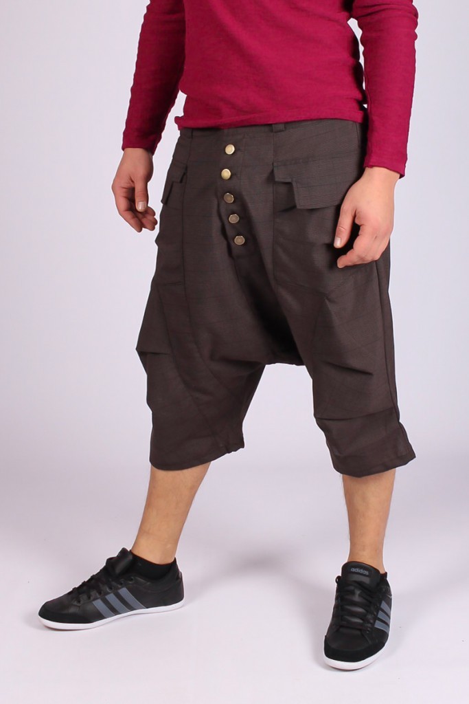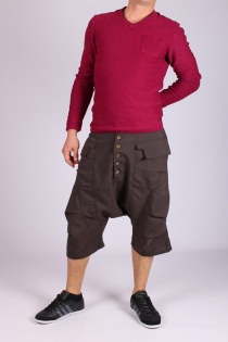 Sarouel à entrejambe basse, (longueur entrejambe 50 cm). La coupe un peu cargo et les boutons sur le devant, le rendent chic et élégant à porter.