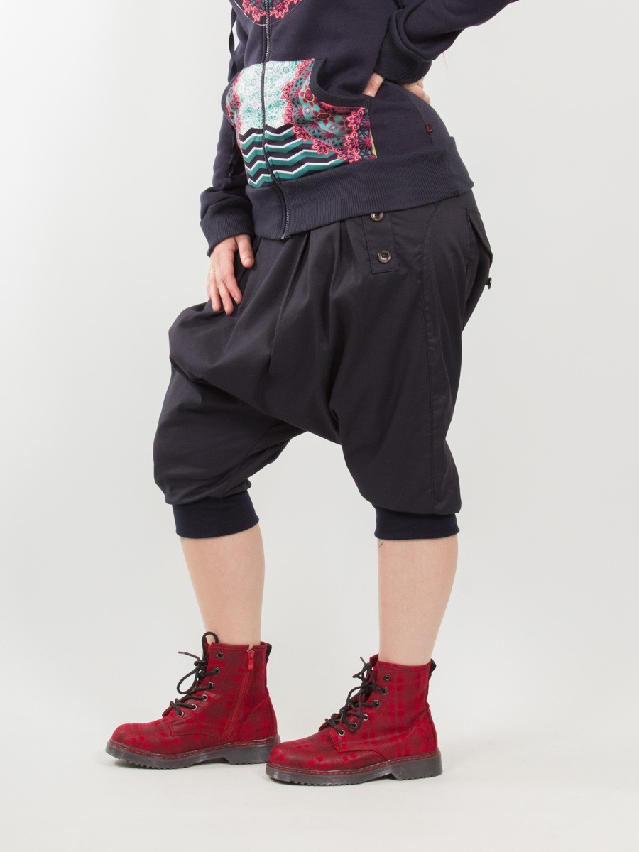 Sarouel court, à entrejambe très basse (longueur 62 cm). Coupe assez classique, facile à porter.