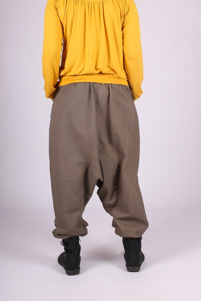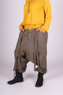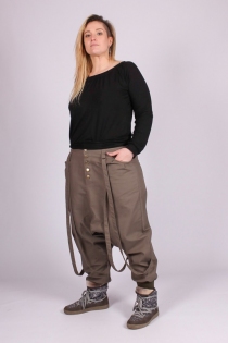 Le p'tit conseil taille de Lilalilou : ce sarouel est en taille unique, mais sa ceinture élastiquée permet de le porter d'une taille S (36) en taille basse, jusqu'à une grande taille L (42).