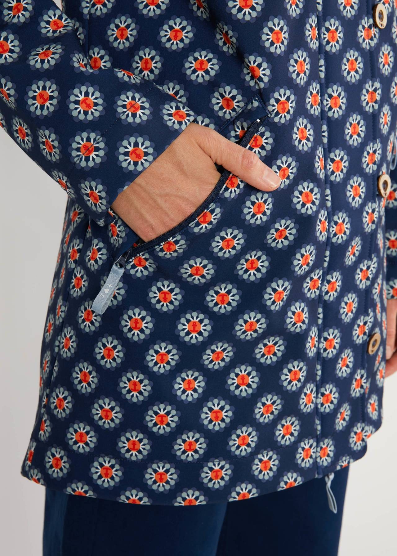 Matière : Exterieur: 90% polyester recyclé, 10% Elasthanne. Interieur: 100% polyester recyclé Membrane: 100%TPU ❀ Tissu extérieur imperméable, totalement déperlante ❀