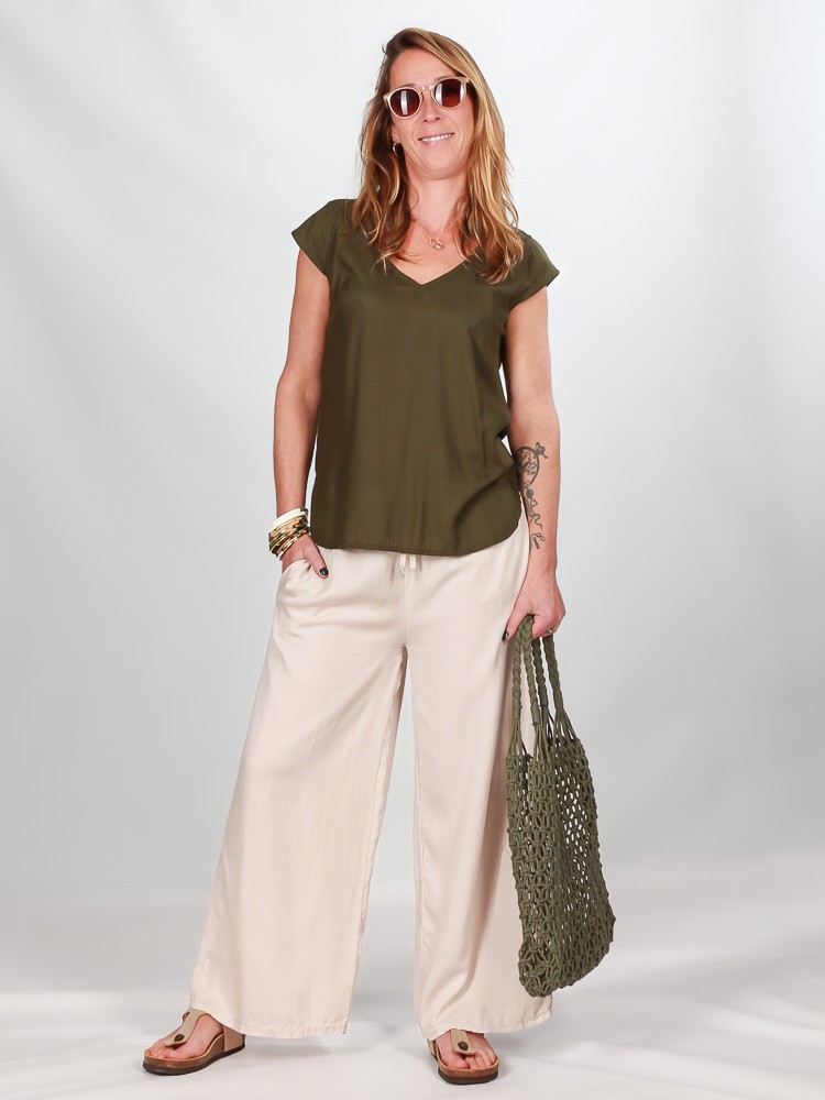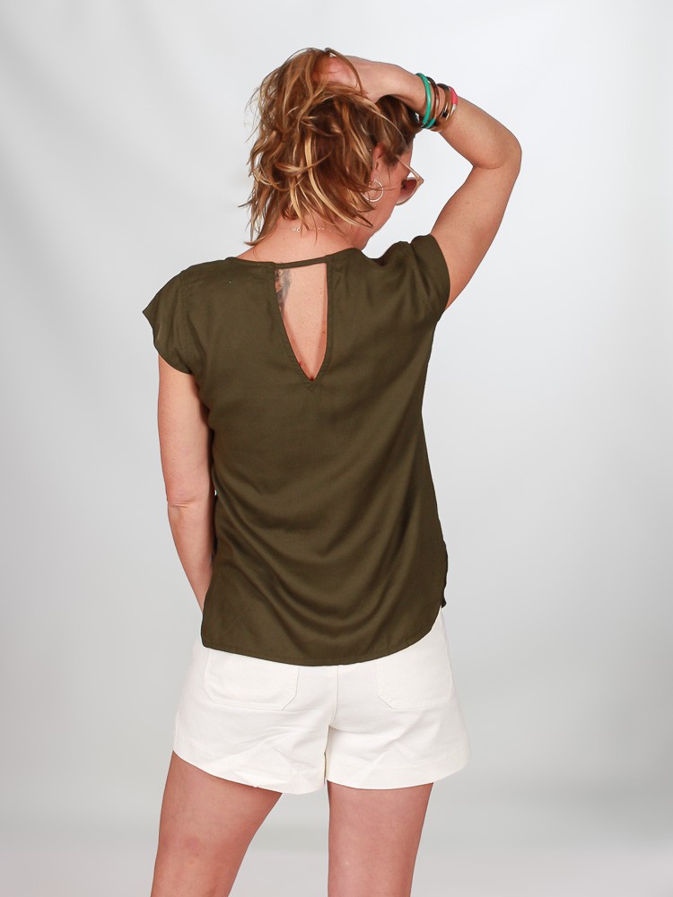 On vous propose le top Ava. Grâce à sa ligne épurée, c'est la pièce essentielle pour compléter votre dress code. Il s'accordera parfaitement avec vos pantalons et vos jupes de votre garde robe. Sa ligne fluide, son encolure V à l'avant et au dos, ses petites manches , il est tout simplement adorable !