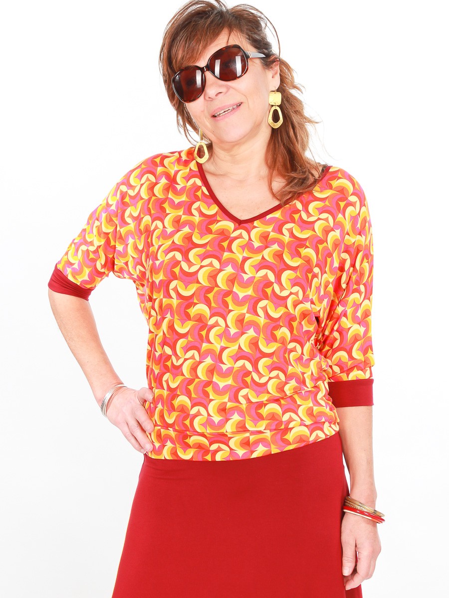 Ce top offre un col en V flatteur qui met en valeur le décolleté, tandis que les manches chauve-souris ajoutent une allure décontractée et moderne. Conçu pour la femme actuel qui apprécie le confort sans sacrifier le chic et souhaite ajouter une touche de style, ce haut deviendra rapidement un incontournable de votre garde-robe.