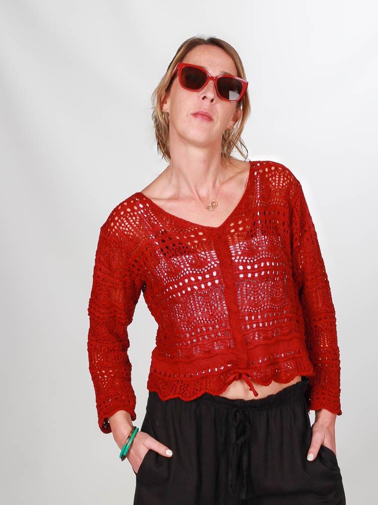 Ce top en crochet incarne à la perfection l'élégance naturelle et le charme bohème.