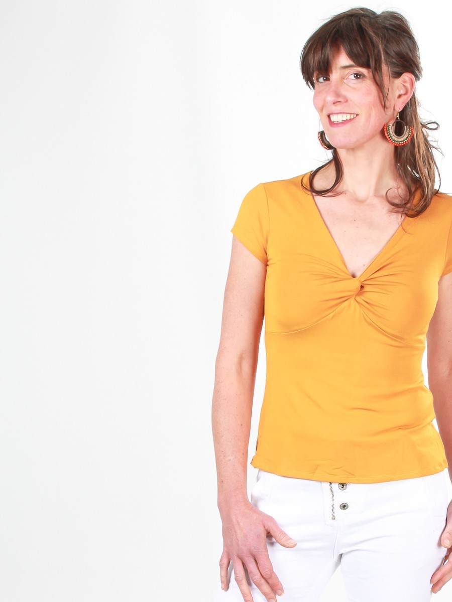 Le top Ilanga! Il vous assure une allure raffinée et structurée du matin au soir. « The décollet? il offre une encolure V profonde soulignée par un noeud effet croisé. Ce top épouse parfaitement votre silhouette tout en mettant votre féminité en valeur.