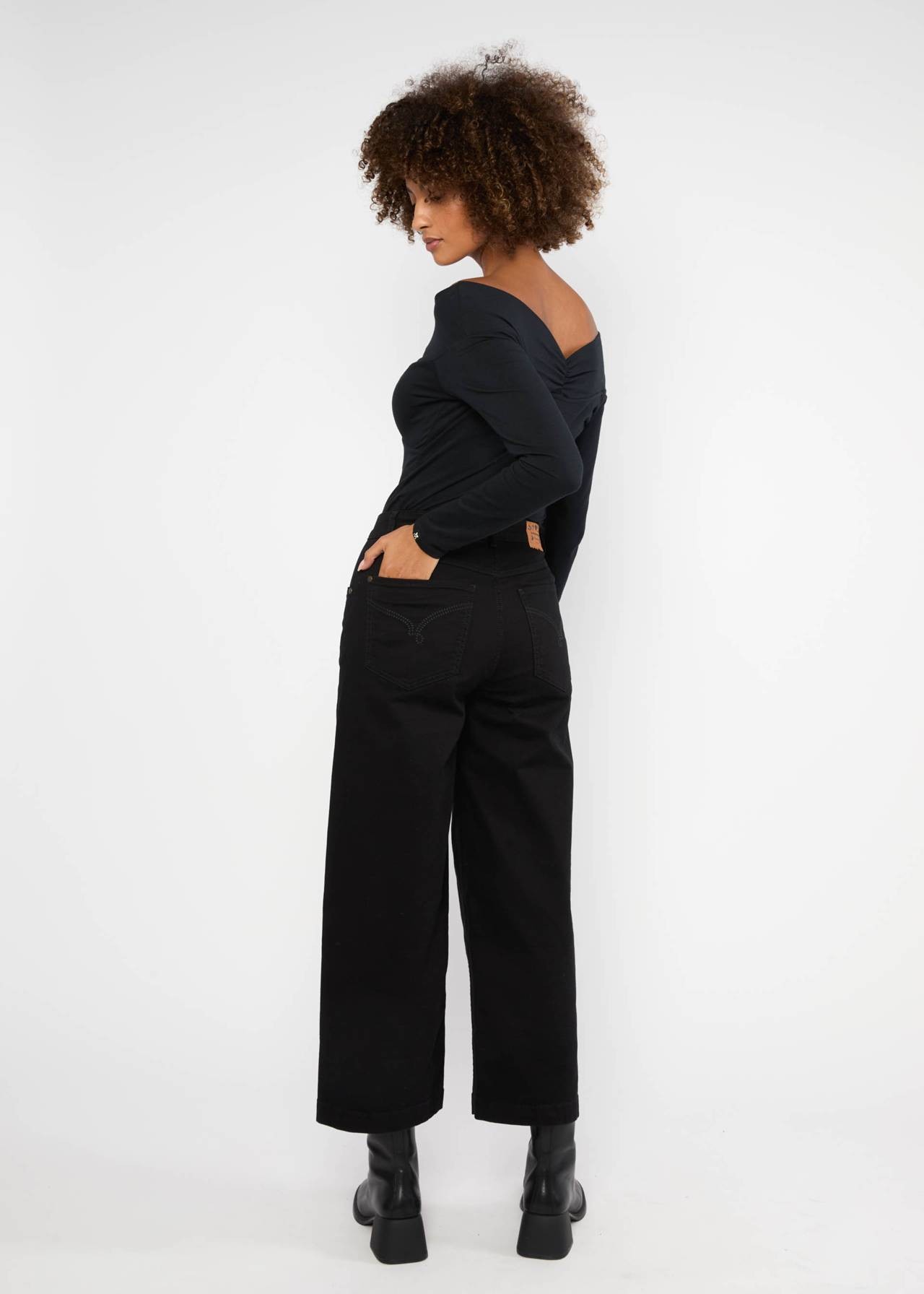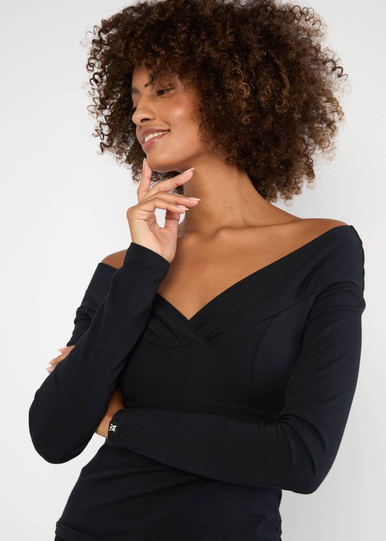 Doté d'un décolleté Carmen féminin et d'épaules tombantes, il met subtilement en valeur la silhouette.