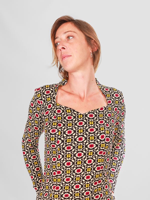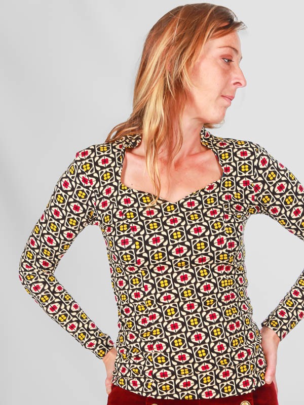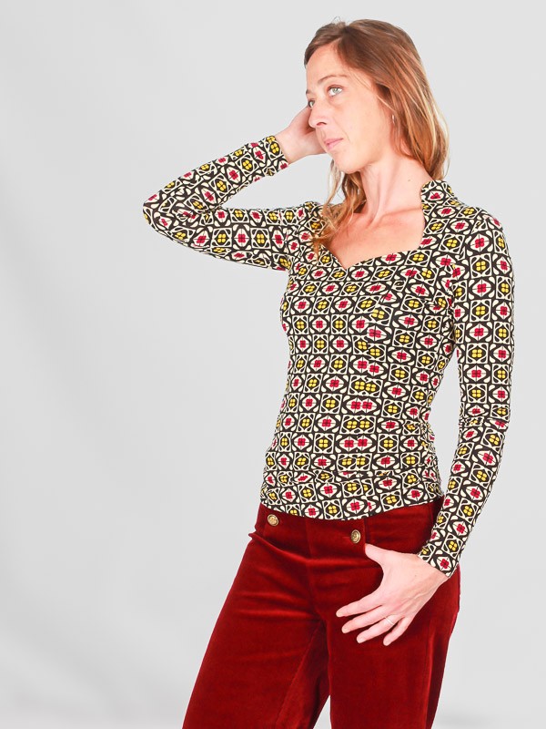 Top ajusté en viscose élasthanne imprimé Infinity, fluide et extensible, parfait pour un look rétro-chic.