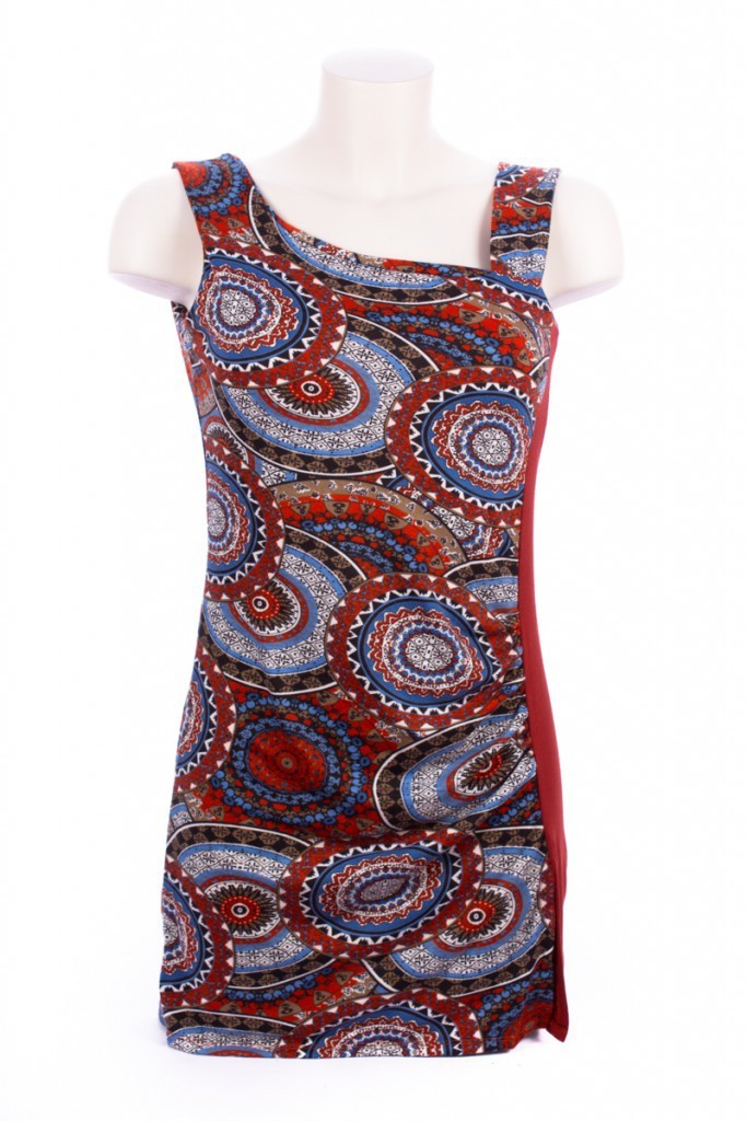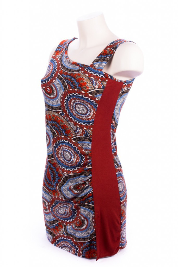 Tunique courte et destructurée à encolure carrée, bande unie et petit plissé côté gauche...