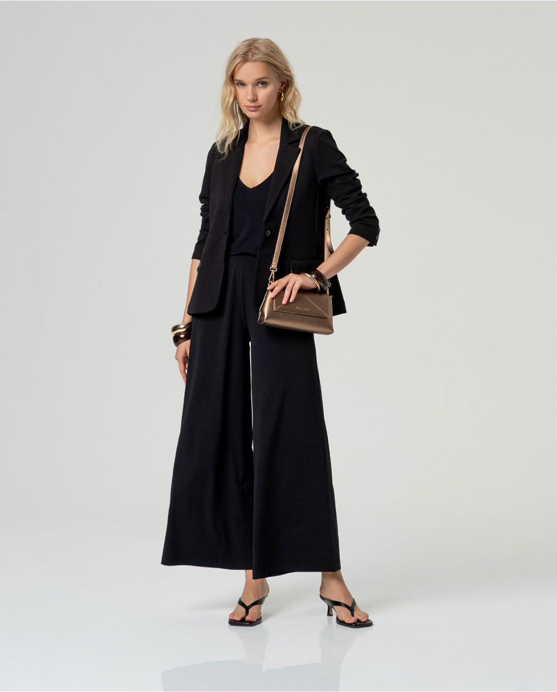 Blazer à col avec revers et manches longues avec un détail boutonné au poignet. Fermeture frontale assortie avec boutons et poches latérales avec rababat. Silhouette ajustée avec coutures latérales et fente arrière. Fabriqué en mélange de rayonne